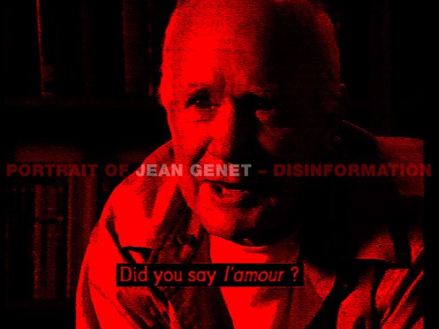 “The Portrait of Jean Genet” is based on a static artwork of the same name, that was first published on the Flickr website in 2011, and then re-published in the book “Rorschach Audio” in 2012. “The Portrait of Jean Genet” video has been screened at PoetryFilm events at The ICA (London, 2014) & CCCB (Barcelona, 2015), and is exhibited with thanks to Alex Hammond, James Register, Claire Craig and to MOT International.